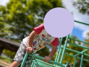 梯子やジャングルジムの一番上まで登り、遠くの景色まで眺めて嬉しそうにしていました。