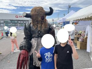 名前がわからない少し怖めのこのキャラクター、最初は児童も怖がっていましたが、近づいてみると写真を取らせてくれる優しいキャラクターでした☺️
