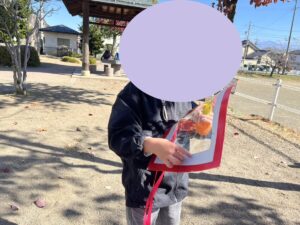 今回はスタッフお手製の落ち葉を貼り付けるボードを一人ずつ持って遊びに行きました。