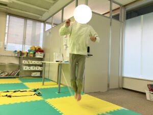 これまでは、一定のリズムで跳べなかったり、跳んでいるうちに前に進んでしまうお友だちが多かったのですが…