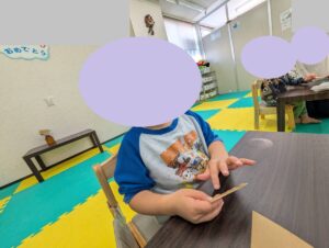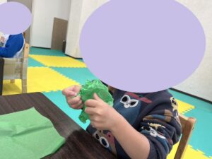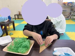 今日は自分から糊を指に付けて、上手に塗ることができ、成長を感じました。