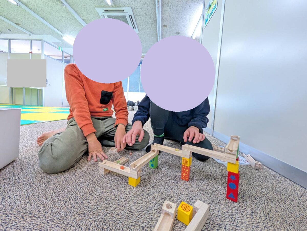 ピタゴラスイッチや流し素麺のように組み立てて楽しんで遊んでいました。