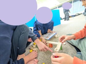 別のグループでは、綺麗な色のパーツを並べて、絵をようにして遊んでいるお友だちもいました。