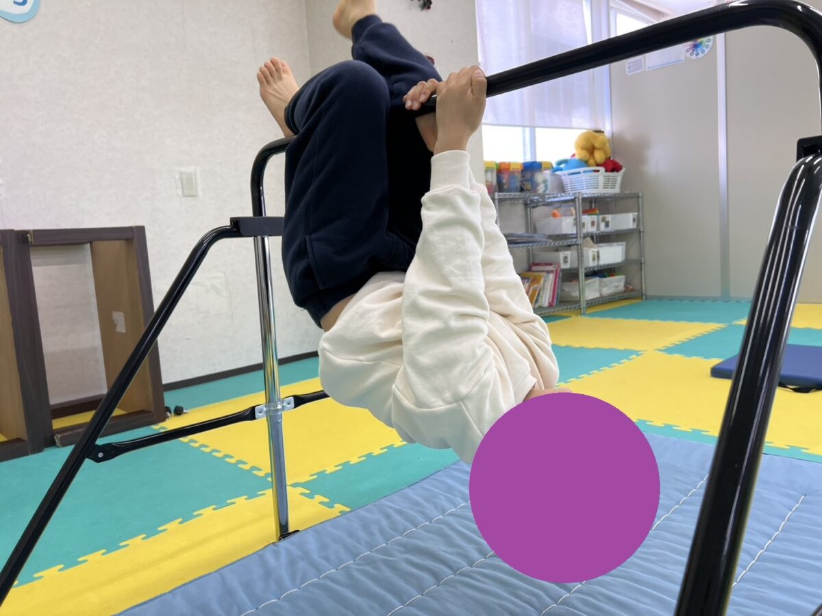 最後は鉄棒での豚の丸焼きです。しっかり握って足もクロスできていますね。