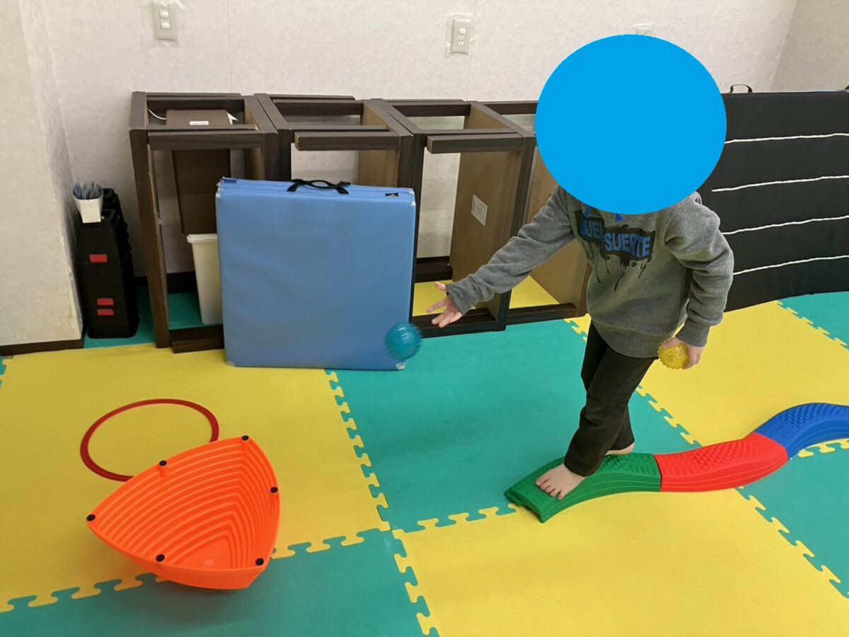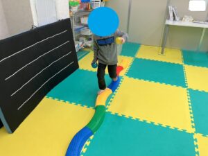 今週は久しぶりにくねくねの平均台を使用しています。たいらでまっすぐの平均台ではスムーズに進めるお友だちも、ちょっとした起伏やくねくねに少しバランスを取りにくそうだったり、新鮮さを感じている様子もありました。
