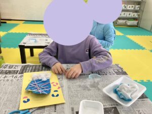 一部取り組んでもらいました。ハサミの作業は楽しかったようです。