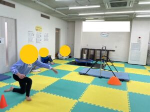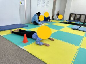 放課後デイの運動遊びで行っている #うつ伏せダッシュで風船キャッチ#の様子です。