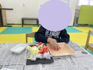 もう過ぎてしまいましたが、2月の行事の節分に因んで「恵方巻」の工作をしました。