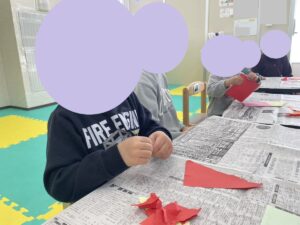 恵方巻の具は、折り紙を千切って作るお友だち、丸めて作るお友だち、畳んで作るお友だち、