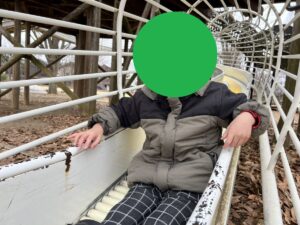 児童発達のお友だちとしては少し速いペースでしたが、お兄さんたちの後を追って頑張って歩いていました。公園ではブランコや滑り台等の遊具で遊んだり、シャボン玉をしたり、石のステージで踊ったりと好きな遊びを楽しんでいました。