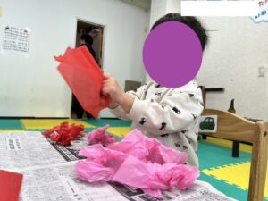 ひな人形を作るお友達といちごを作るお友達に分かれて製作活動を行ないました。