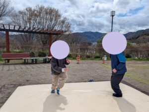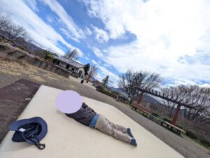 午後は、お天気が不安でしたが、なんとか持ってくれたので、稲荷山公園でお弁当を食べた後に、遊具で遊ぶことができました。