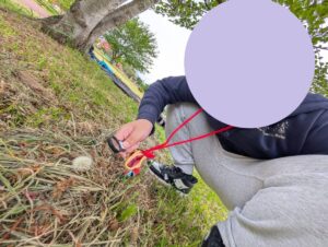 体を動かした後は、持参したルーペで、蟻や花の観察。小さな世界を拡大して見れ、これもまた楽しかったようです。